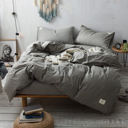 3piece 100 Washed Cotton Duvet Cover Simple Style Bedding Set With Zipper Closure Ultra Soft And Easy Care Queen Gray Walmart Canada